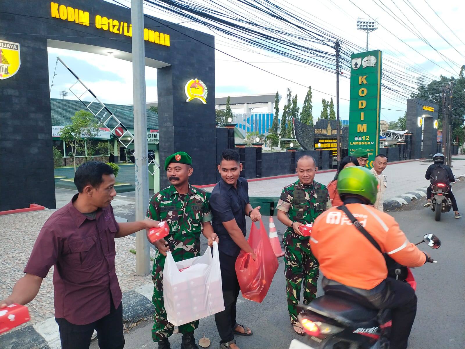 ​Lamongan, Pusatberitarakyat.com – Suasana sore di depan Makodim 0812/Lamongan tampak berbeda pada hari ini. Komandan Kodim 0812/Lamongan, Letkol Inf Deni Suryo Anggo Digdo, turun langsung ke jalan didampingi Ketua Persit KCK Cabang XXVII Dim 0812, Ny. Putri Deni, untuk membagikan paket takjil gratis kepada pengguna jalan dan warga sekitar.