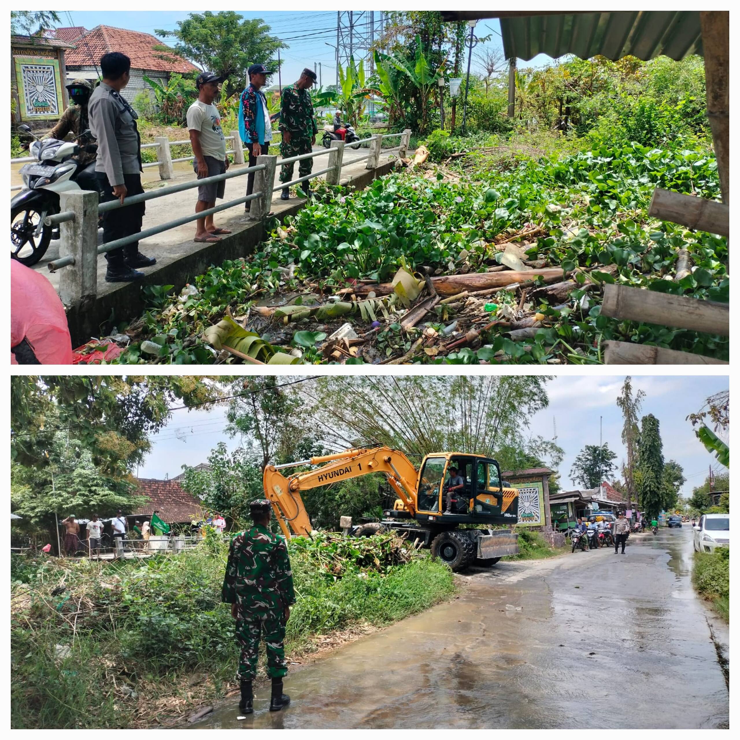 Cegah Banjir, Babinsa Koramil 0812/03 Turi Bersinergi Bersihkan Enceng Gondok di Kali Kruwul 2