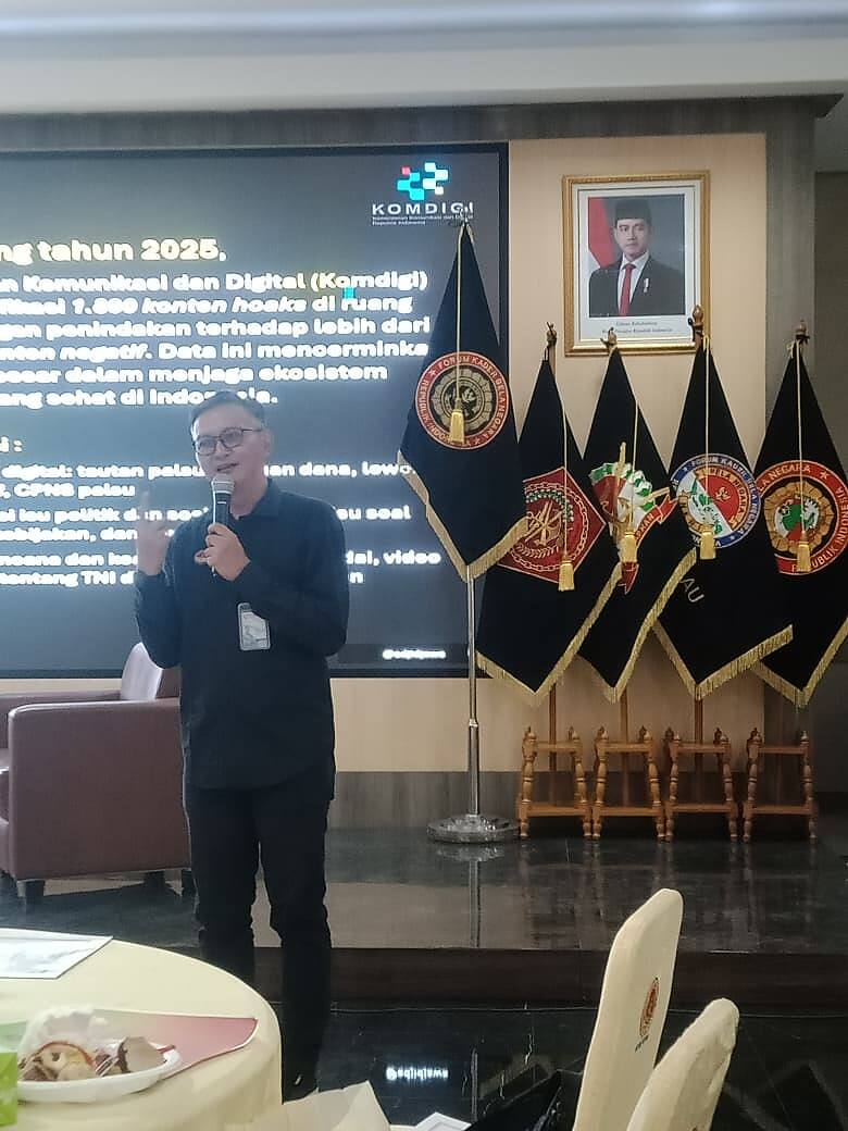 Sesi berikutnya, yang disampaikan oleh Kementerian Komunikasi dan Informatika, fokus pada “Peran Pemerintah dalam rangka Pencegahan Penyebaran Berita Hoax dan Judi Online.” Pemerintah menyadari bahwa perang melawan disinformasi dan konten ilegal tidak bisa dimenangi sendirian. Diperlukan kolaborasi simbiosis dengan media arus utama dan platform jurnalistik warga yang bertanggung jawab. Materi ini menyoroti mekanisme pelaporan yang sudah ada, seperti Aduan Konten dan kerja sama dengan trusted flagger, serta mendorong insan pers untuk aktif menjadi sumber informasi yang kredibel sehingga masyarakat tidak terjebak pada sumber-sumber yang tidak jelas. Ancaman judi online juga ditekankan bukan hanya sebagai kejahatan ekonomi, tetapi juga sebagai pintu masuk pendanaan aktivitas ilegal dan perusakan moral bangsa yang menggerogoti ketahanan sosial.