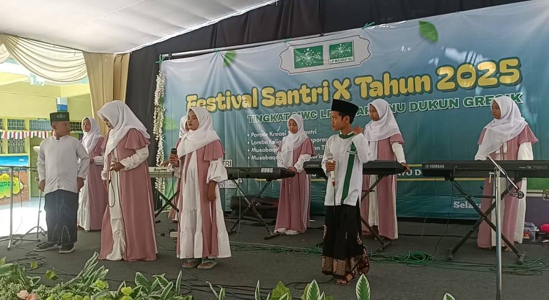 Gresik, pusatberitarakyat.com— Suasana penuh semangat dan kebersamaan tampak mewarnai Festival Santri ke-10 LP Ma’arif MWCNU Dukun Gresikyang digelar di MI Hidayatus Salam Lowayu, pada Selasa (14/10/2025). Kegiatan tahunan ini menjadi ajang silaturahmi dan unjuk prestasi bagi seluruh madrasah se-Kecamatan Dukun.