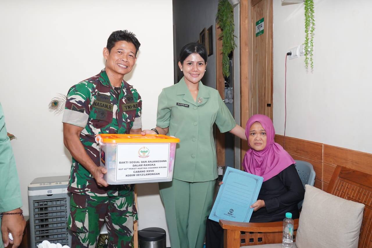 Lamongan, Pusatberitarakyat.com – Dalam rangka memperingati Hari Ulang Tahun (HUT) ke-80 Persit Kartika Chandra Kirana Cabang XXVII Dim0812 Lamongan, Komandan Kodim 0812 Lamongan Letkol Inf Deni Suryo Anggo Digdo beserta ketua Persit KCK Cabang XXVII Dim 0812 Lamongan Ny Putri Deni beserta pengurus dan anggota melaksanakan kegiatan Anjangsana sebagai bentuk kepedulian sosial dan penguatan ikatan kekeluargaan. Kegiatan ini difokuskan pada pemberian santunan kepada para Warakawuri serta keluarga anggota TNI AD yang memiliki putra-putri berkebutuhan khusus.