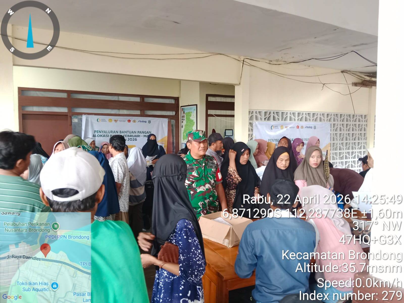 Lamongan, Pusatberitarakyat.com – Wujud kepedulian terhadap warga, Babinsa Koramil 0812/18 Brondong Sertu Adib turun langsung mendampingi penyaluran bantuan pangan di Desa Brondong, Kecamatan Brondong, Kabupaten Lamongan, Kamis (23/04/2026).