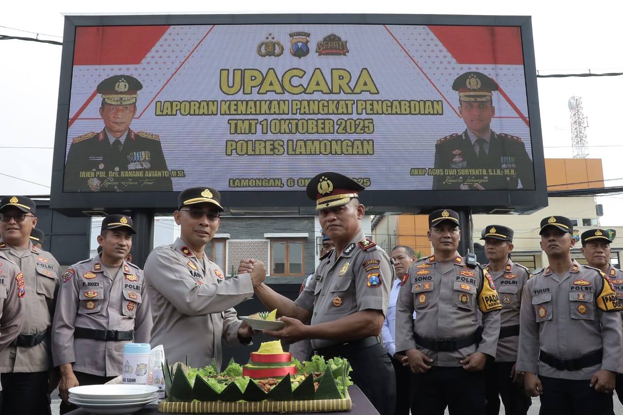 Lamongan, pusatberitarakyat.com– Polres Lamongan menggelar upacara kenaikan pangkat pengabdian bagi salah satu perwira terbaiknya, AKP Suwandi Kapolsek Glagah yang resmi naik pangkat menjadi KOMPOL terhitung mulai tanggal 1 Oktober 2025.
