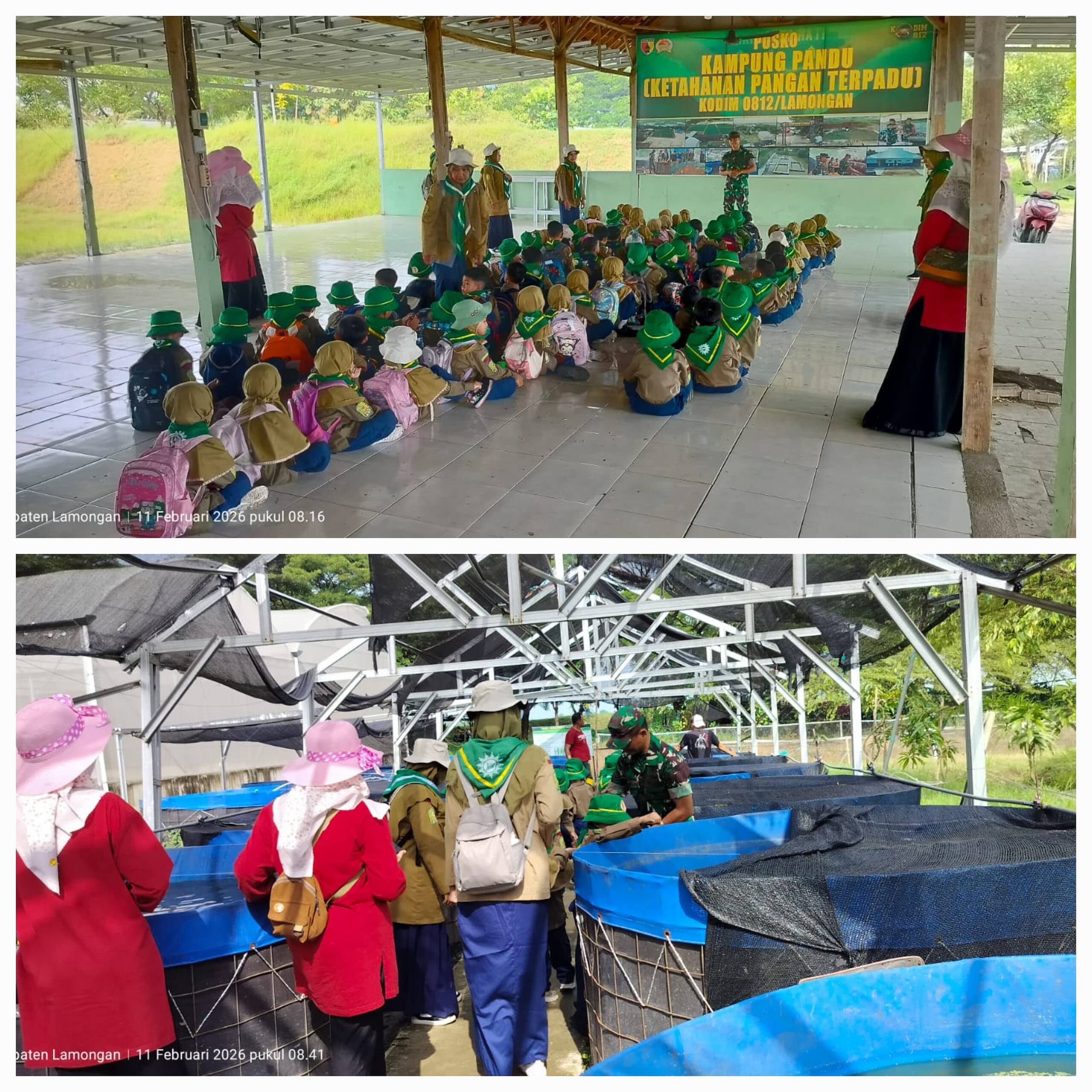 Lamongan, Pusatberitarakyat.com – Di tengah hamparan hijau area Kampung Pangan Terpadu Kodim 0812/Lamongan, hadir sebuah pemandangan yang menghangatkan hati. Bukan hanya tentang panen atau bibit, ayam maupun sapi, namun kali ini giliran anak-anak TK Aisyiyah Bustanul Athfal 1 yang merasakan kehangatan ilmu di Kampung Pandu, Kamis (12/02/2026).