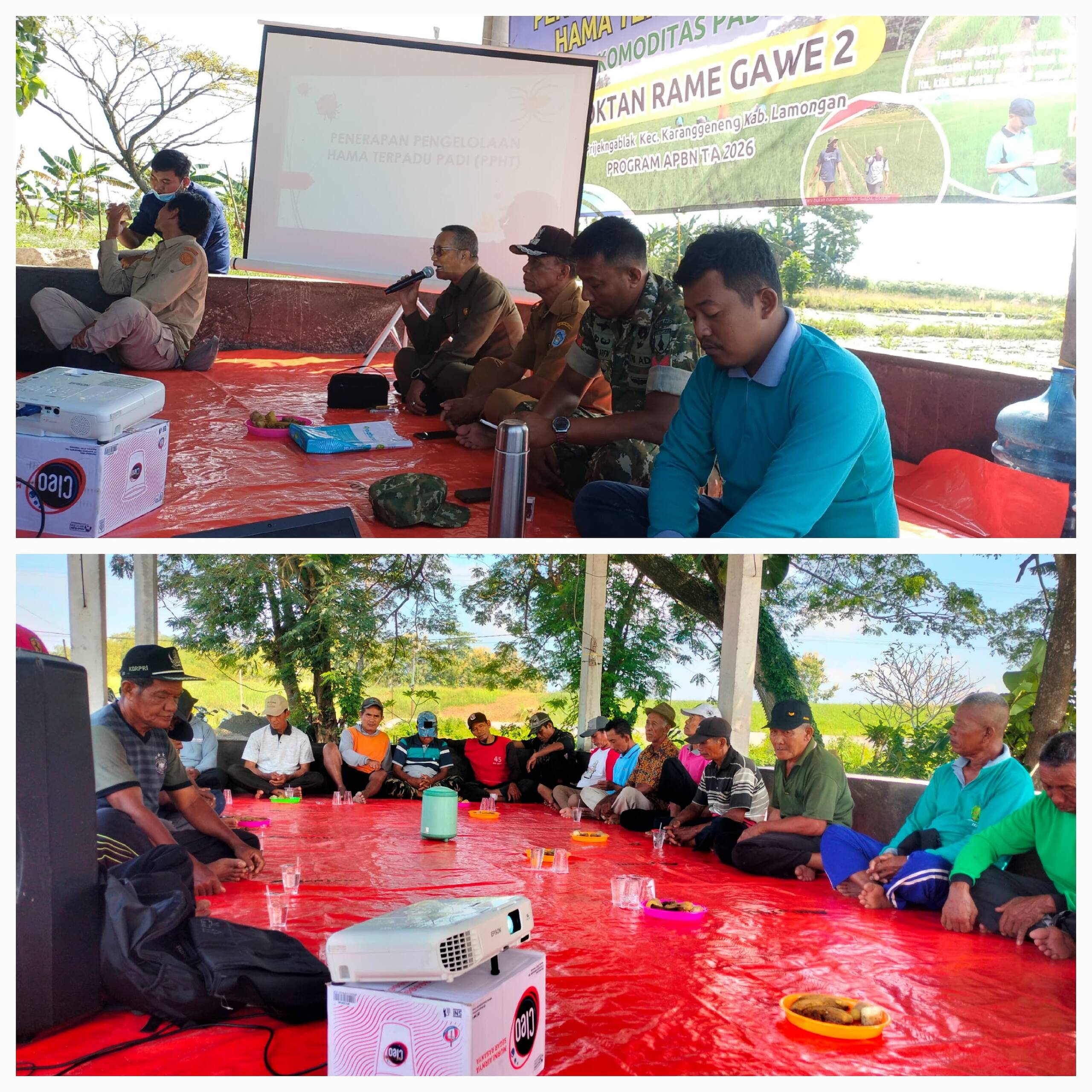 Hadir dalam kegiatan tersebut jajaran pimpinan dan tenaga ahli pertanian, antara lain Bapak Mastur selaku Kepala Koordinator POPT Kabupaten Lamongan,Bapak Tarmuji selaku Kepala Desa Prijekngablak selaku Kopka Saeful, Babinsa Desa Prijekngablak,Ibu Yulis selaku Kepala UPT Pertanian Karanggeneng,Bapak Nanang selaku PPL Karanggeneng dan Ketua Kelompok Tani (Poktan) Rame Gawe 1-5.