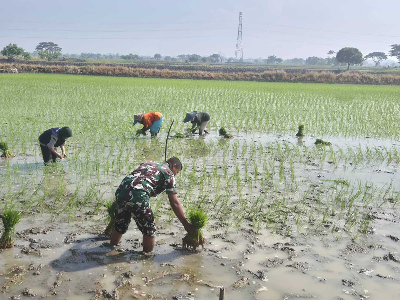Perkuat Ketahanan Pangan Desa, Babinsa Koramil 0812/25 Kawal Tanam Padi Inpari