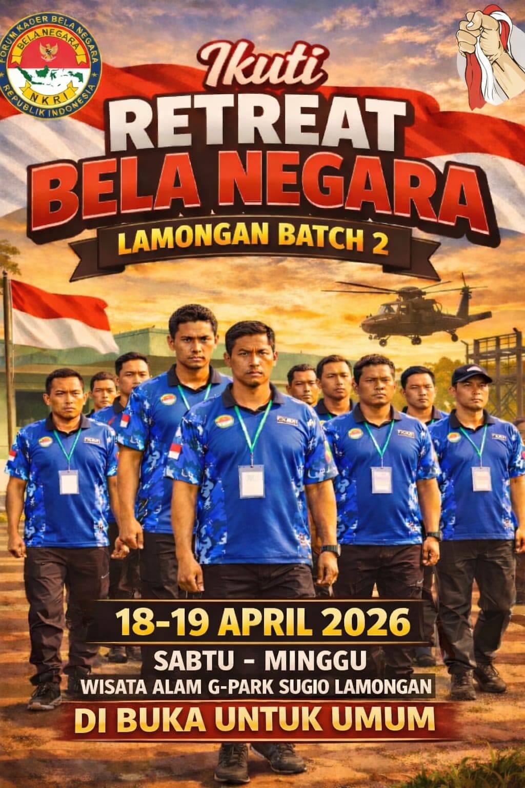 Retret Bela Negara FKBN Bakorda Kabupaten Lamongan Batch 2 Tahun 2026 ini rencananya di adakan di Wisata Alam G-Park Sugio Lamongan, Pada Hari Sabtu dan Minggu, Pada tanggal 18-19 April 2026.
