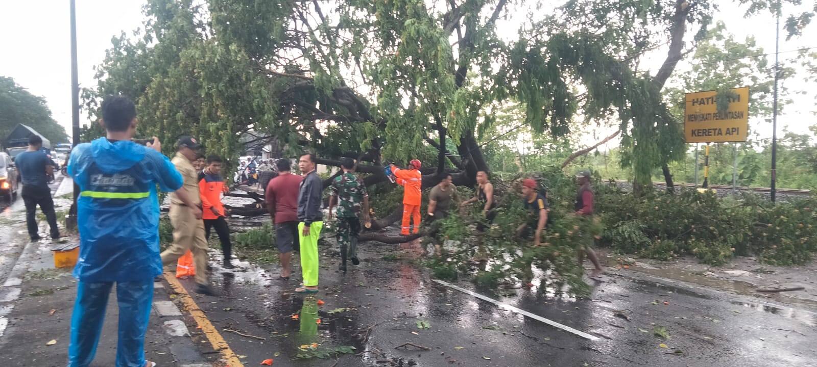 Peristiwa tumbangnya pohon berukuran besar tersebut sempat mengganggu akses jalan serta membahayakan rumah warga. Berkat kesigapan tim gabungan yang dibantu penuh oleh masyarakat, proses pembersihan dan pemotongan batang pohon dapat diselesaikan dalam waktu singkat, sehingga jalur kembali normal dan potensi bahaya dapat diminimalisir.